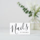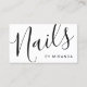 featuring word "nails" in modern calligraphy font style on front side and details in modern sans serif font style on back side.