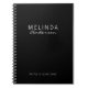 Professional Modern Notebook featuring name in white modern sans serif font style and last name in white modern calligraphy font style on black background.