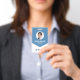 A professional and modern ID badge for company employee's and event staff. The design features an employee photo, as well as the staff's job title and ID number. It also shows your business logo, business name and tag line. All colours and fonts can be personalised to be suitable for your business or event.