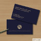 Make a lasting impression with our Professional Modern Minimalist Dark Blue Business Cards featuring classic typography. The back features a striking gold geometric emblem that can be replaced with your logo, along with space for an industry disclaimer. Perfect for accountants, tax preparers, financial consultants or any business professionals looking to make a lasting impression.