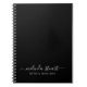 Professional Modern Notebook featuring name in white modern script font style with custom text in white modern sans serif font style on black background.