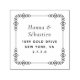 Modern return address stamp featuring your name in a stylish script and your address in simple typography. Save time and effort by effortlessly personalising your return address. Perfect for wedding invitations, party announcements, everyday correspondence and business mailings.