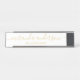 This desk name plate features name in gold modern script font style and title in gold modern sans serif font style on white background.