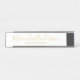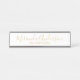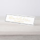 This desk name plate features name in modern script font style and title in gold modern sans serif font style on white background.