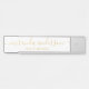 This door sign features name in gold modern script font style and title in gold modern sans serif font style on white background.