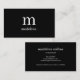 Professional Modern Simple Black Minimal Monogram Business Card. Easy to customise, classic, elegant serif italic script typography business card with a simple initial & name monogram.