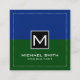 Professional Monogram Modern Green Dark Blue Square Business Card