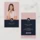 A simple modern monogram feminine design with your photo and fountain pen silhouette, with casual script font and modern block font on the pastel blush pink background.
