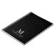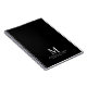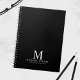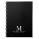 Professional notebook features custom monogram, name and text in white classic serif font style on black background.