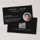 Elegant black professional business card featuring your head shot photo in a circle frame and your name, title and contact information (e.g., email, telephone numbers, firm name and mailing address) in simple modern white lettering. On the back, input a URL address to create a scannable QR code linked to your website, social media profiles, or other platform that showcases your work, making it easy for others to explore your expertise, and add additional text or leave blank.