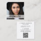 Chic modern square business card featuring your photo overlayed by your profession and name in large trendy typography. On the back, input a URL address to create a scannable QR code linked to your website, social media profiles, or any other platform that showcases your work, making it easy for others to explore your expertise, and personalise with your contact details.