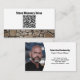 This business card features a lower border rock wall on the front and QR code placeholder. A custom photo placeholder and text details are on the opposite side. The design can be used for any profession. Personalize the text fields with your information, remove text or click customize to select a typeface style, size, and color you prefer. Replace the photo with yours. Use the QR code link to send potential customers to your website, reviews, photographs or other business related page. This is available on a variety of other paper styles. The placeholder photo is courtesy pexels.com.
