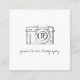 Simple elegant professional photographer monogrammed promotional square business card featuring a hand-sketched old camera and a trendy handwritten typography script. ++++++ Easy to personalise with your details and scanning QR code on both sides. +++++++++ Suitable for any type of business photography - weddings, studio, business, food etc.