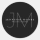 Professional Plain Black and White Monogram Classic Round Sticker