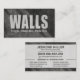 A bold, modern business card design created for plaster and paint professionals who offer complete interior wall services. The strong front message instantly communicates confidence and expertise, while the clean back layout clearly presents contact details and a structured list of services.