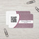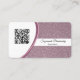 A faux plum purple glitter sets off the background of this business card design featuring template name and title on the left with QR Code placeholder on one side. The back includes a coordinated design and colours with text fields for the business name and details. Replace the placeholder with your QR code on the front. Fill in the template fields or click customise to select a font style, size, and colour you like. Use your QR code to sent customers to your website, reviews, photos or other special page.