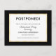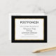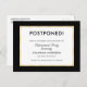 Need to postpone your event? Send this postcard to let your guests know the change in plans. The simple design is accented with a stylish black and gold border.