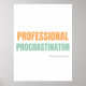 A bold, humourous, and instantly relatable design for anyone who excels at putting things off! The design features the self-proclaimed title "PROFESSIONAL PROCRASTINATOR" in large, clean, contrasting typography, using warm orange and cool mint green colours against a neutral background. Below the main text, a small, subtle line confirms the commitment to delay: "Will start tomorrow." This design is a fun, minimalist way to express a common trait with a touch of irony. Perfect for students, remote workers, creatives, or anyone who appreciates simple, clean design and witty self-deprecation.