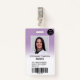 A modern, and professional pastel purple lavender ombre nurse photo id badge with logo and barcode.