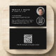 Simple black professional business card featuring your photo showcased in a circle frame, your company logo and your name, title and contact information (such as email, telephone numbers, firm name and mailing address) in clean, modern white lettering. On the back, input a URL address to create a scannable QR code linked to your website, social media profiles, or any other platform that showcases your work, making it easy for others to explore your expertise, and add additional text or leave blank.