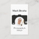 Professional QR Code Photography & Design. A Professional custom business card template with Camera Shape Style combination can easily be updated with your Photo or  logo, QR code, Name, Profession Title, Address, Phone, Mobile, Email and Website.