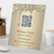 Professional QR Code Scannable Gold Glitter Pedestal Sign