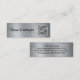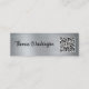 Minimal silver faux brushed metal professional mini business card with your name in a bold, stylish script. Add your website's URL address to create a scannable QR code. On the back, customise additional text (such as email, telephone numbers, firm name and mailing address).