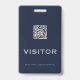Keep your visitors and guests easily identified with this simple customisable QR visitor badge. The blue and grey design features space to upload your QR code and text that reads "Visitor" in a classic font. The QR code makes it easy for guests to access important information about your facility or event. The text at the bottom reminds visitors to please return the badge before leaving. This badge is perfect for businesses, hospitals, schools, museums, attractions, and more.