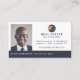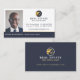 Modern and professional real estate business card design with a photo placeholder incorporated into the design to display your own photo portrait. Clean, minimal layout design with stylish navy and gold real estate house logo that you can personalise with your business name or remove and replace with your own logo. Name and title are displayed prominently along the bottom within a navy blue stripe. Subtle faux gold accents are incorporated into the design to add an elegant professional look. Personalise with your contact information. The reverse side features company logo and additonal contact information, such as website address. You can change the background colour, font, font colour and layout to suit your personal preference. Logo design contained in this design are original artwork by moodthlogy.
