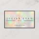 Elegant sparkly faux holographic background business card for both small business owners and large organisations. The design features a modern and minimalistic typography with simple but effective background. Perfect for a beautician or beauty salon owner, makeup artist, costume maker, hair stylist, or cosmetologist. NOTE: The holographic details are simulated in the artwork. There will be no actual holographic shine effects when printed.