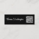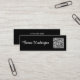 Minimal black professional mini business card with your name in a bold, stylish white script. Add your website's URL address to create a scannable QR code. On the back, customise additional text (such as email, telephone numbers, firm name and mailing address).