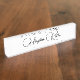 The nameplate looked exactly as pictured, I was very happy with this product! It also arrived promptly after placing my order! I would definitely recommend this product! The printing turned out exactly as I designed it, very pleased!