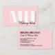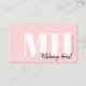 Pink Professional Simple Modern Monogram Business Card. You can change it to any business you want, makeup artist, lash specialist, hair stylist, or even something like marketing, consulting, and more! Featuring a mix of blush pink, black and white fonts in classic and bold typography mixed with an more elegant script font with the details. A trendy and chic look that is still professional and elegant. You can change out all of the colours to make it the way you want it. The side name on front should work with most initials, but if not, you may want to play around with the spacing in the full editor.