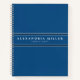 Modern notebook features a simple design in a trendy classic blue colour palette. Custom name presented in a classic blue banner with a double blue stripe with white accents and text.