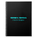 Minimalist Clean Black Soli Colour Background and Neon Blue modern font Business Botebook. Personalise for your custom use.