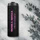 Minimalist Clean Black Soli Colour Background and Neon Pink modern font Thermal Tumbler. Personalise for your custom use.