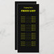Minimalist Clean Black Soli Colour Background and Neon Yellow modern font Price List. Personalise for your custom use. Click on the "Customise It" button to change the background colour, font styles and font colour.