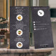 Having this food menu list rack card will elevate the ambiance of the party you are planning to set, or it can be used as a tool to promote your restaurant's food specialities. Its classic chalkboard aesthetic lends an inviting, homemade vibe that will have guests or customers eager to explore your delectable offerings and make them leave a good lasting impression. The design layout has minimalist touch yet displays an engaging visual through its featured graphic and textual elements, perfect to professionally showcase and market daily specials or signature dishes. You can also customise this by replacing the photos you want to feature to make this promotional tool or party essential more captivating. Add a restaurant logo at the back to widely expand the identity of your brand and make your business more accessible by including contact, email, website, location and social handle details.