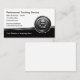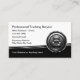 Cool truck driver theme business cards in an editable online template created with the coolest truck driving and shipping silver tone emblem digitally printed in a metallic look presented on our glossy paper stock. Best business cards for a local or long distance truck driver, freight forwarding service, or shipping company.