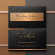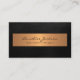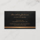 Modern trendy glamourous gold copper metal and black leather (PRINTED, NOT REAL LEATHER) elegant script signature calligraphy professional business card with an exclusive glam luxury touch. ++++++++++ Suitable for fashion, boutique owner, personal stylist, interior designer, salon manager, makeup artist and other creative professions.