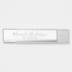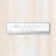 Professional White and Silver Door Sign featuring name in silver modern script font style and profession in silver modern sans serif font style, with bottom silver border, on white background.