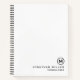 Modern hardcover sketch notebook features a minimal design in a classic black and white colour palette. Custom name presented in the lower right-hand corner in stylish simple font with a complimentary minimal monogram medallion.