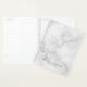 Professional planner features custom name and text in grey classic serif font style on white marble background.