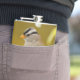 The flask itself is fine. It’s a cheap flask, obviously bought in bulk, however am prepared to overlook that. Given that it is a personalized item, I would have liked to have seen gift boxing instead of the generic packaging. Terrible printing, and/or quality. It’s a cheap, tacky vinyl. It is not cut straight and is also applied in a way that it is overhanging the bottom, causing the glue to catch on items and it will eventually roll and tear, damaging the wrap.