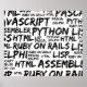 This text design features names of programming languages (also called computer languages, computer programming languages and general-purpose programming languages): HTML, Lisp, CSS, PHP, Pascal, JavaScript, Delphi, Ruby on rails, Assembler and Python. Letters are in black colour and background is white. Perfect gift for geeks and programmers!