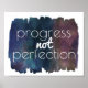 This inspirational quote poster has typography white text with progress not perfection on dark background for wall art decor in home or office.