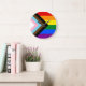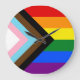 The Progress Pride Flag has five additional arrow-shaped lines. It includes black and brown stripes to represent marginalized LGBTQ+ communities of color, along with the colors pink, light blue and white, which are used on the Transgender Pride Flag.