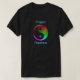 Men’s basic black t-shirt with an image of a yin and yang symbol in metallic rainbow colours. The phrase “Project Aquarius” is printed in light blue.