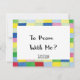 Have fun creating your own personalised promposal card for your potential prom date. Colourful and fun design features three balloons,colourful border and personalised text. Unique way to ask someone to the prom. Create a keepsake card for him or for her.