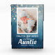 Baby photo block with a blue star background. Personalise it with a name. Features the quote "Only the best sisters get promoted to auntie". Modern birth announcement idea.